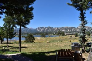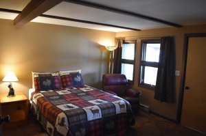 Perfect for couples looking for a romantic getaway or for small families with small children! This downstairs lodge room includes a beautiful deck view of the Continental Divide and the Mummy Range, Lake Estes, and the Town of Estes Park, including the Estes Park Fairgrounds and the Stanley Hotel. Bear boasts a bedroom with a queen bed, wood-burning fireplace, and its own entrance, as well as a separate from the kitchen/living space. The living space boasts a full kitchen, full bath, and a pull-out sofa couch across from Bear’s second wood-burning fireplace!
